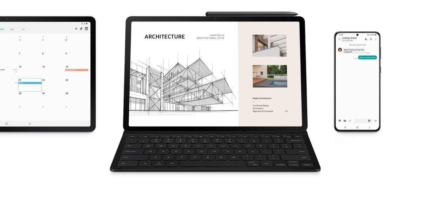 Thoải mái chia sẻ bàn phím không dây tối đa 3 thiết bị cho trải nghiệm làm việc tiện lợi và trọn vẹn hơn. Với kết nối Bluetooth, bạn có thể dễ sàng soạn thảo ở trên điện thoại hoặc máy tính bảng khác khi vẫn đang kết nối trên máy tính bảng chính. Bật Samsung DeX và trải nghiệm như máy tính bàn trên màn hình