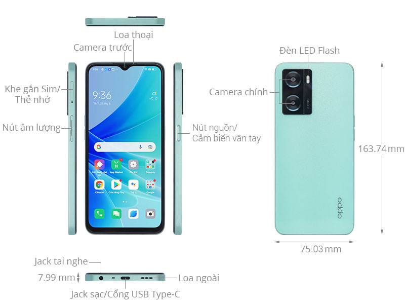 Phiên bản Oppo A57 màu xanh mint còn là tâm điểm thiết kế, thể hiện sự trẻ trung, tràn đầy năng lượng tươi xanh, như người bạn đồng hành cho cuộc sống nhiều niềm vui. Đối với phiên bản màu đen dành cho người dùng thích sự đơn giản.